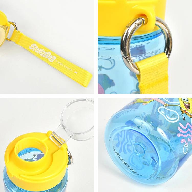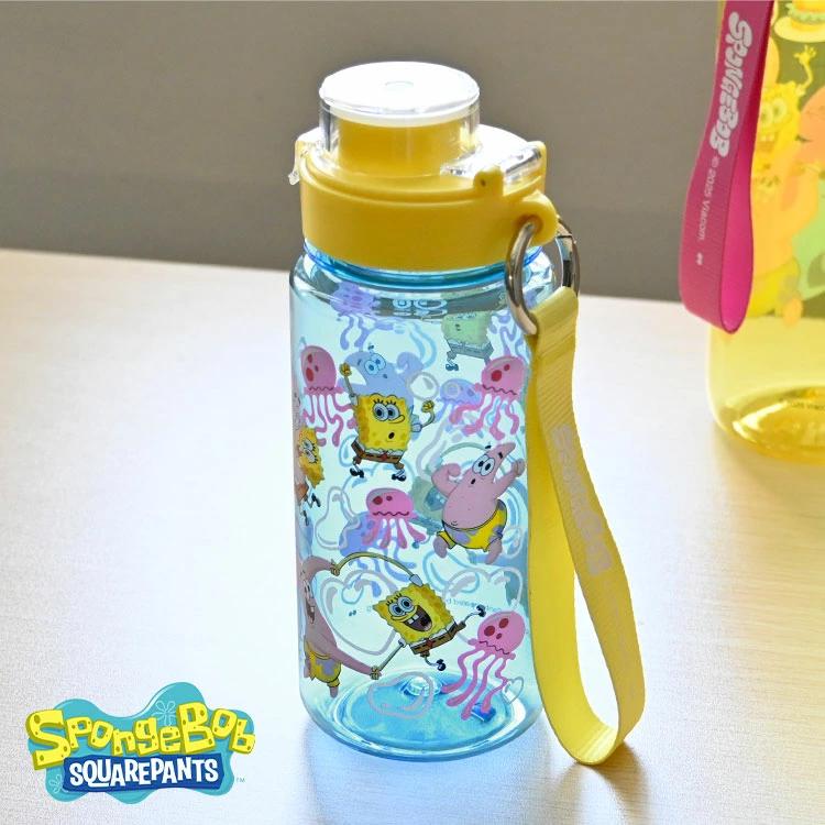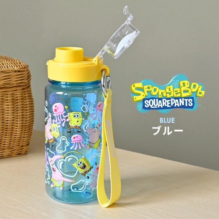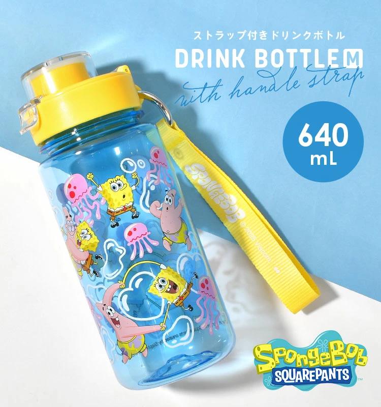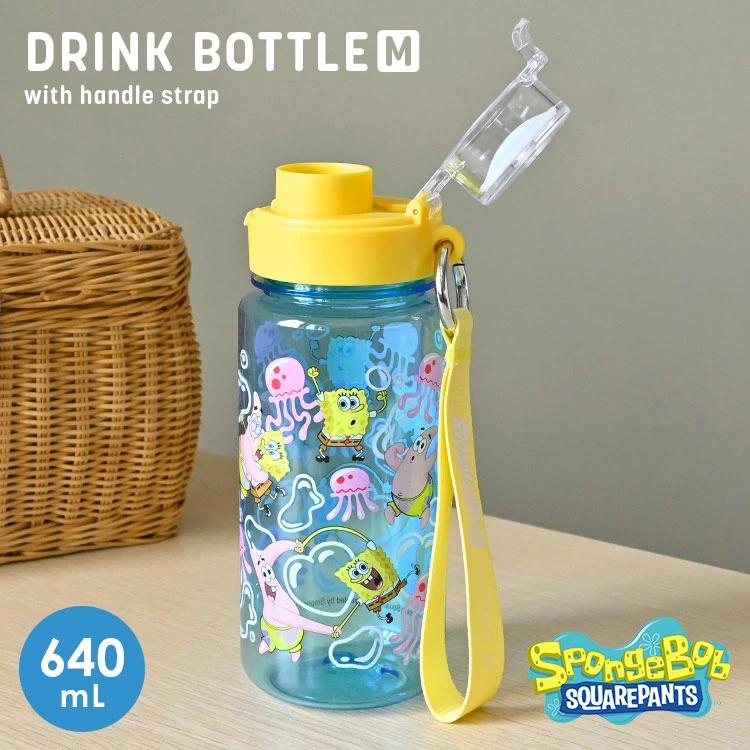 【ドリンクボトルMストラップ付】スポンジボブのデザインが可愛いドリンクボトル。大容量の640mLで健康や美容にいい常温水がたっぷり飲めます。軽くて使いやすいクリアタイプで透明感がおしゃれ♪ジムやヨガ、ウォーキング時におすすめです。ストラップ付きで持ち運びやすく、通勤、通学にも◎シンプルな作りなので分解しやすくお手入れも簡単です。