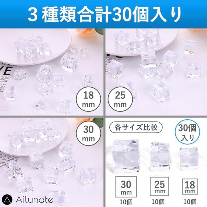 「3種類のサイズにより自然な装飾を再現」18mm、25mm、30mmのアイスキューブが各サイズ10個づつ計30個入っています。