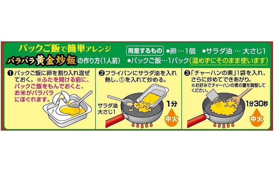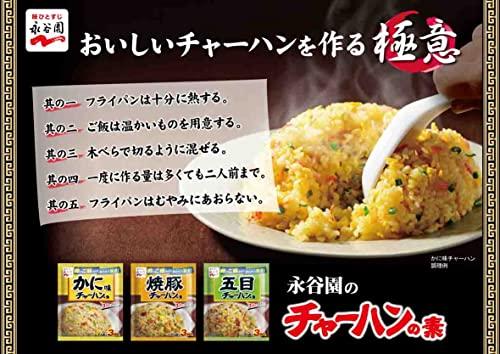 人気のチャーハンの素3種「かに味」「焼豚」「五目」を詰め合わせたアソート商品です。卵とご飯を用意してフライパンで炒めるだけで、簡単にパラッとしたおいしいチャーハンができあがります。