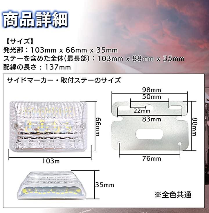 ・「サイズなど」 発光部:103mm x 66mm x 35mm ステーを含めた全体(最長部):103mm x 88mm x 35mm 配線の長さ : 137mm 「カラー」 側面青(ブルー)/アンダーライトはホワイト