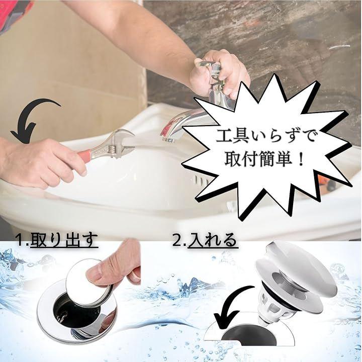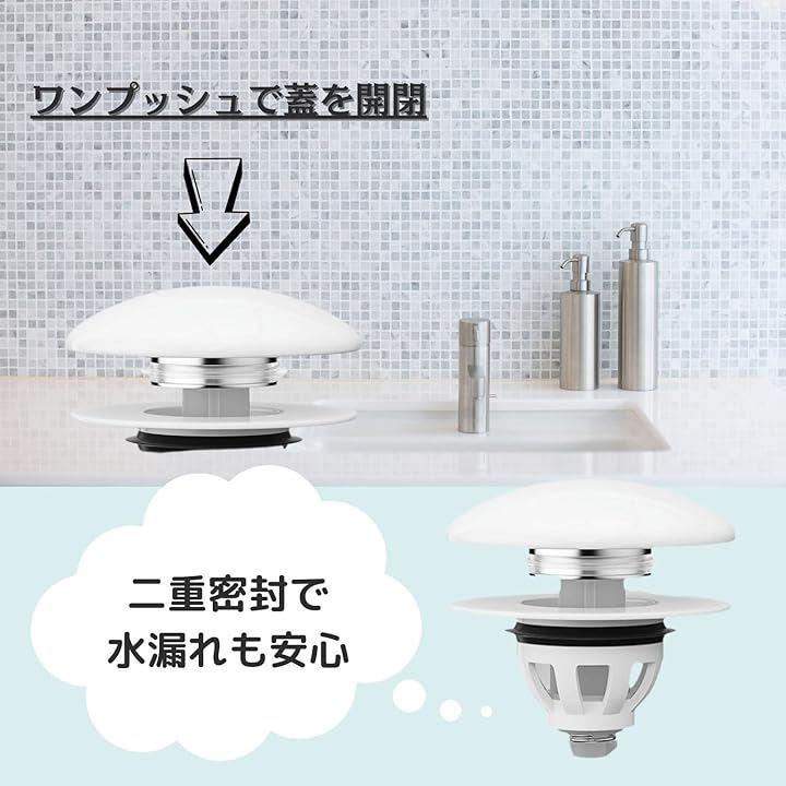 内径34mm-40mmの排水口に対応し、洗面器、浴槽、バスルーム、キッチンなど99%の排水口に適用します。