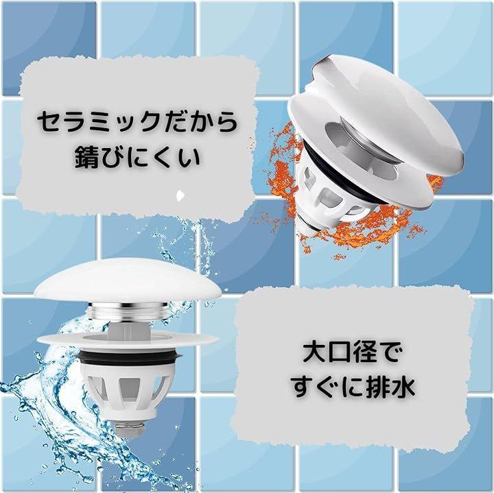 「高品質素材使用」耐久性の高いセラミック製のポップアップ排水栓です。