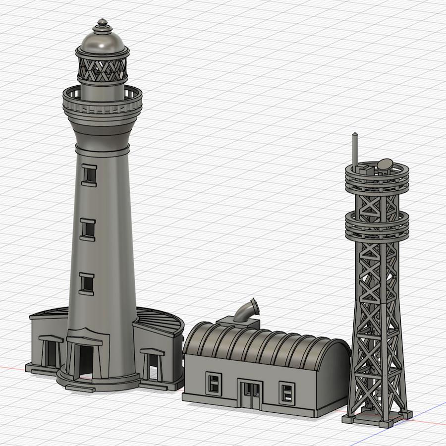 灯台サイズ:約 2.5cm x 2cm x 高さ5.5cm機器室サイズ:約 2.5cm x 1cm x 高さ1.5cm電波塔サイズ:約 1cm x 1cm x 高さ4cm