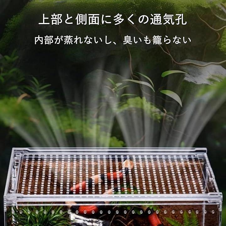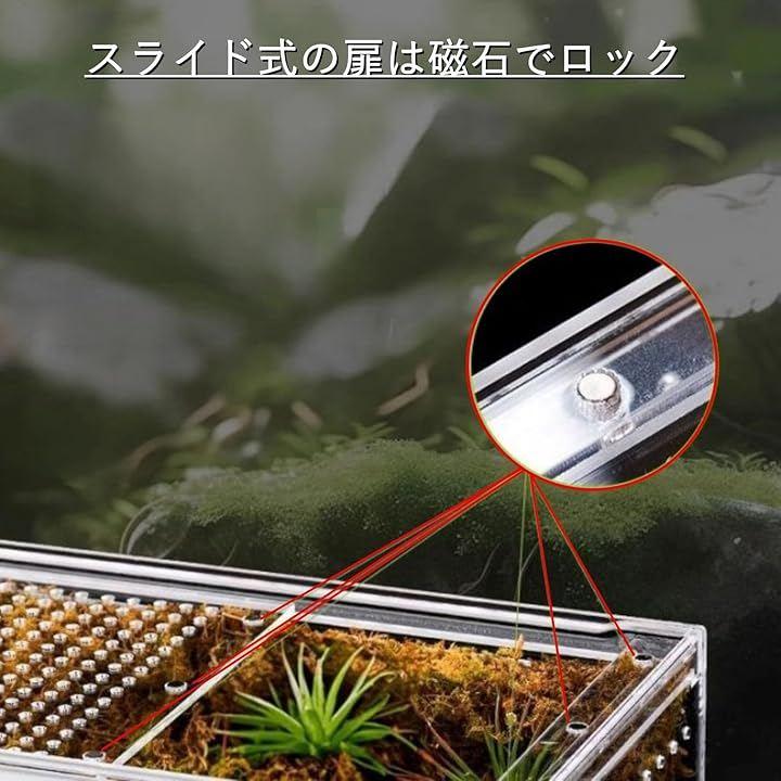 この爬虫類飼育ケースは、スライドカバーデザインにより、ペットのお手入れが簡単で、餌を与える際の逃走を防ぎます。