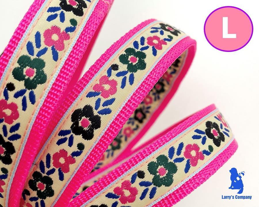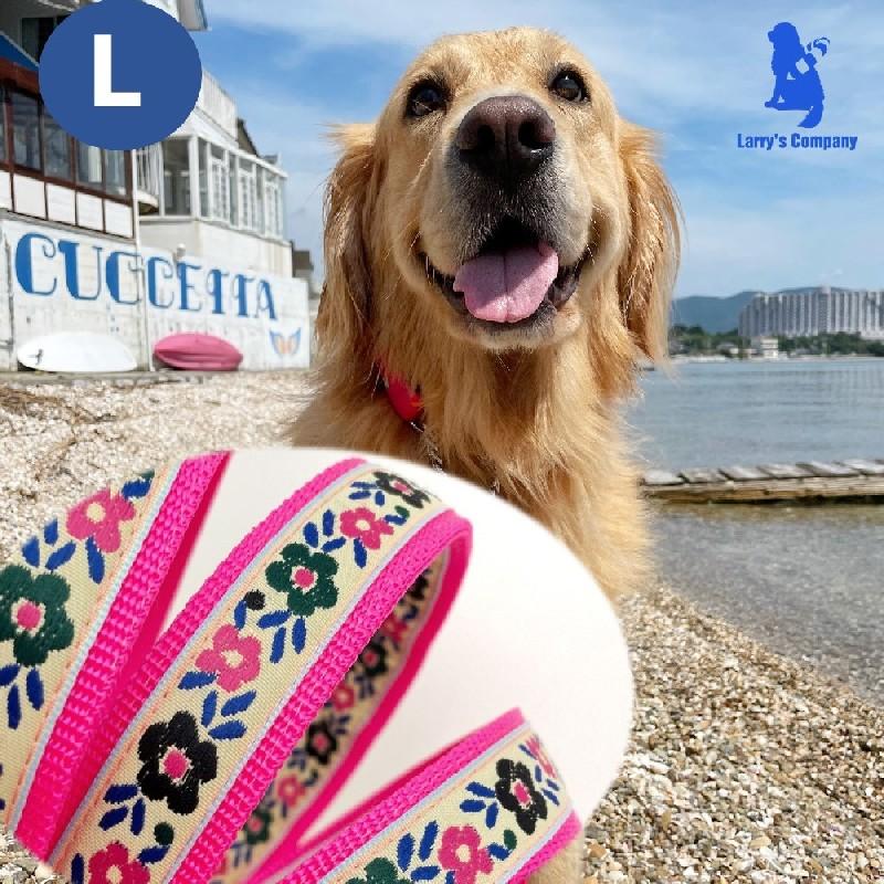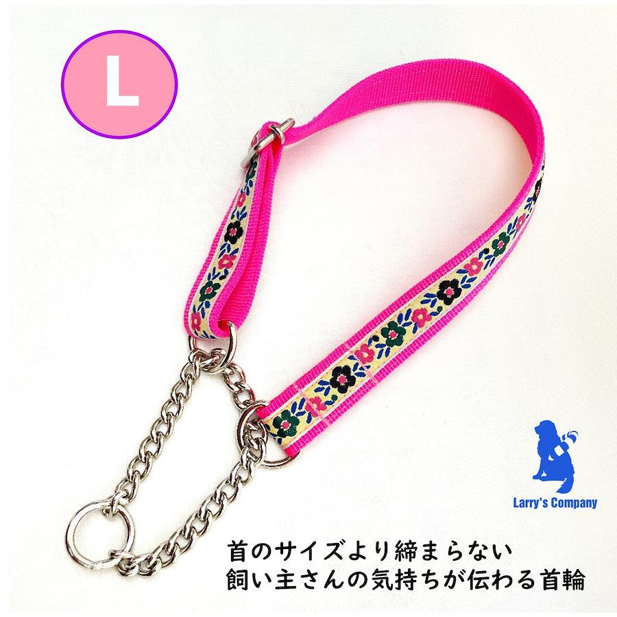 【サイズ】L首輪:幅2.5cm調節可能範囲 約30cm~46cm生後3ヶ月位のパピーから成犬になるまで、同じ首輪で調節可能です。首のサイズより締まらないので苦しくなく、引いた時に金具のシャリっとする音で、しつけにも向いています。