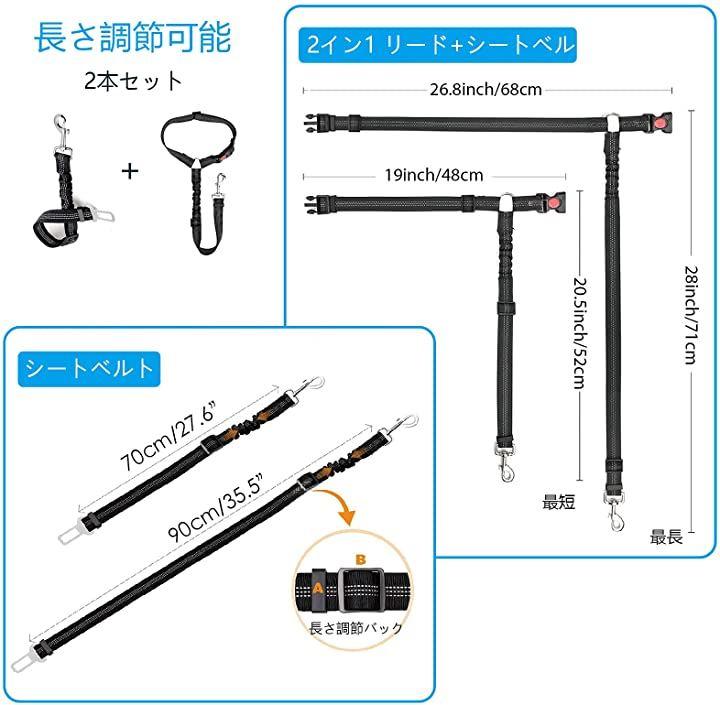 ・「2本セット&安全保護&全種犬・全車種対応」ペット用シートベルトはドライブ、車乗り好きの犬猫用安全ベルトリードです。
