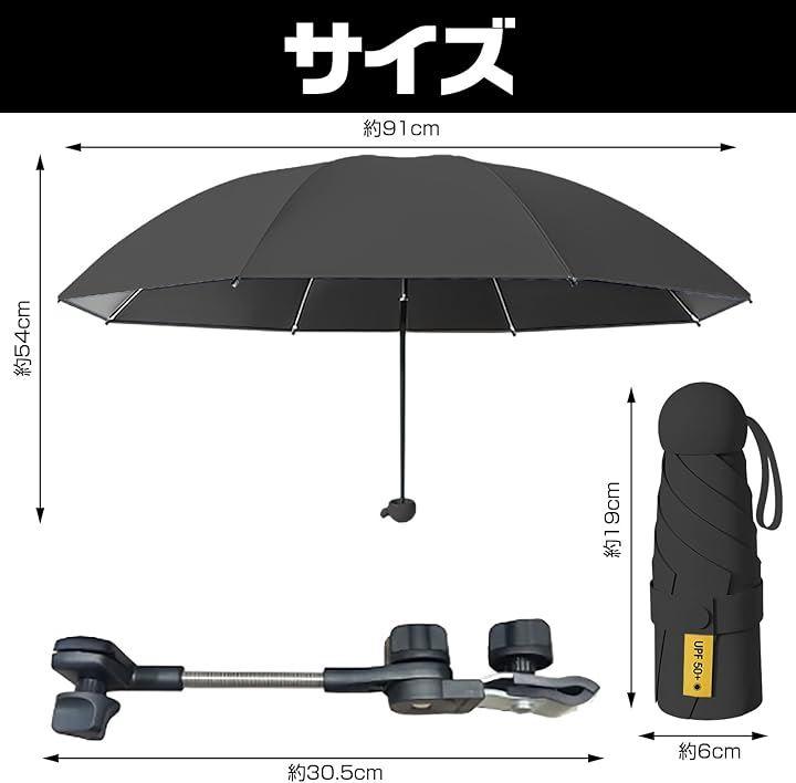 「ペットカート用 日傘 仕様」 サイズ:[使用時]直径91x高さ54cm [収納時]19x6cm 付属品:晴雨兼用の日傘、日傘スタンドの2点セット UVカット率98% 重さ:約210グラム *モニターの環境により、色の見え方に若干差が生じる場合がございます。