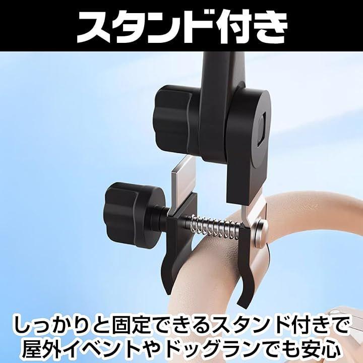 「スタンド付きで安定感抜群の犬用日傘」 しっかりと固定できるスタンド付きで、屋外イベントやドッグランでも安心して日除けができます。