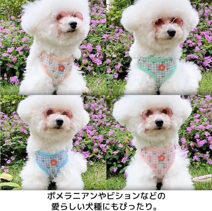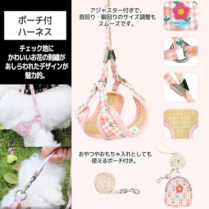 小型犬にぴったりのハーネスとリードのセットは、軽量で通気性に優れた内側メッシュ構造。