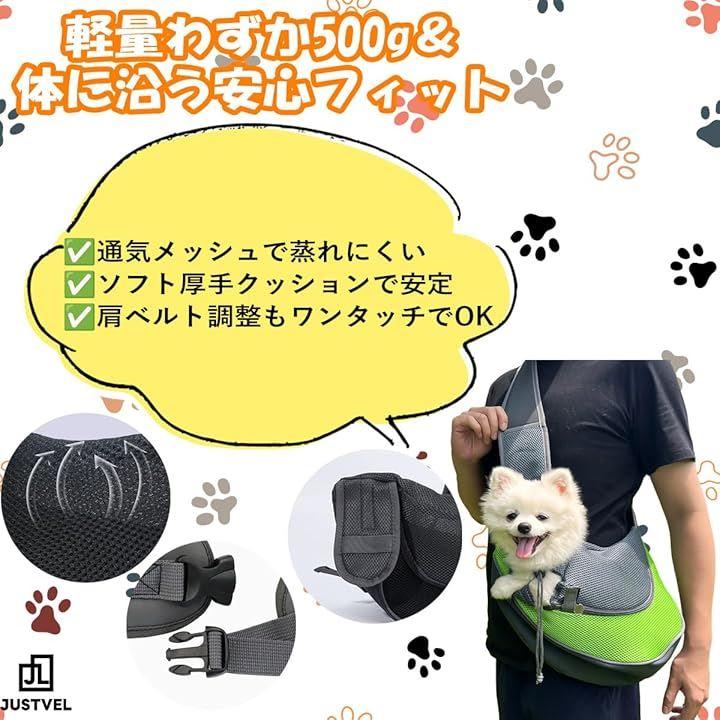 「飛び出し防止設計で安心安全」飛び出し防止フックを内蔵したペットスリングです。