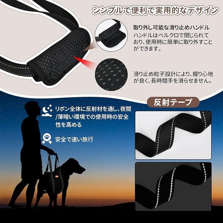 「頑丈なハーネス 犬 介護」反射性のナイロンストラップが頑丈なペット 介護 ハーネス全体に通っており、暗い場所や暗い場所でも視認性が高くなっています。