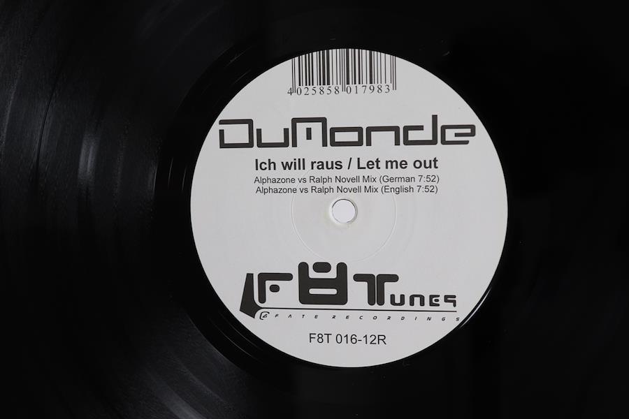 ・アーティストDuMonde・タイトルIch Will Raus / Let Me Out・レーベル・型番Fate Recordings F8T01612R・フォーマット12インチレコード・コンディション(盤)良い (VG+)・コンディション(ジャケット)プレインカバー(元ジャケット/カバー無し)・コンディション(帯)オビなし・特記事項