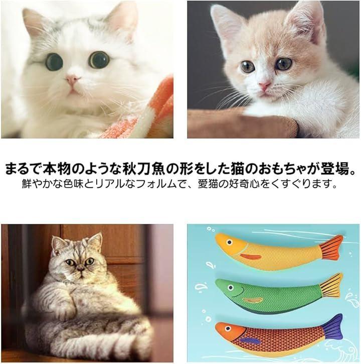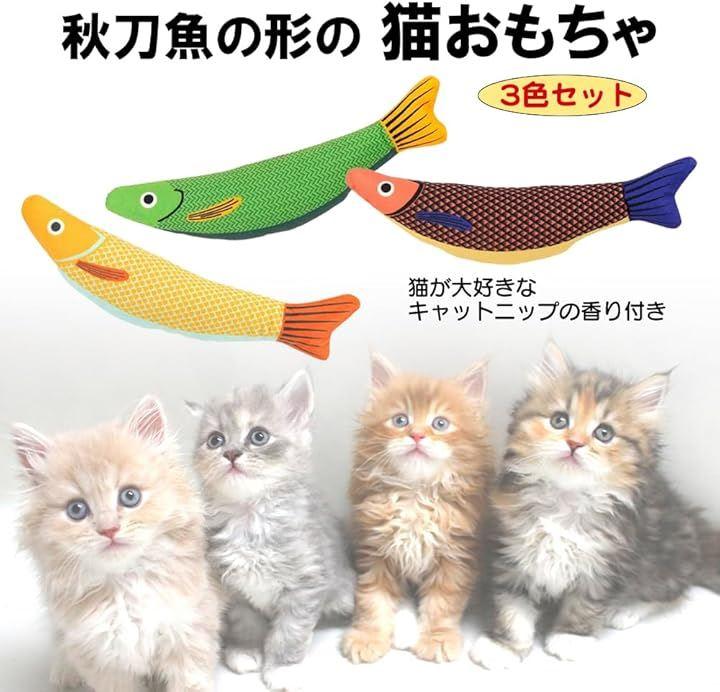 まるで本物のような秋刀魚の形をした猫のおもちゃが登場。