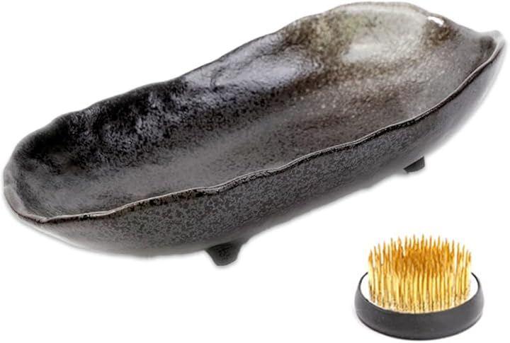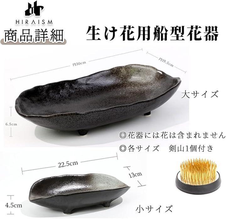 「商品内容」生け花用船型花器 <サイズ>大:幅約30cmx奥行19.5cmx高さ6.5cm 小:幅約22.5cmx奥行13cmx高さ4.5cm 備考:剣山1個付き