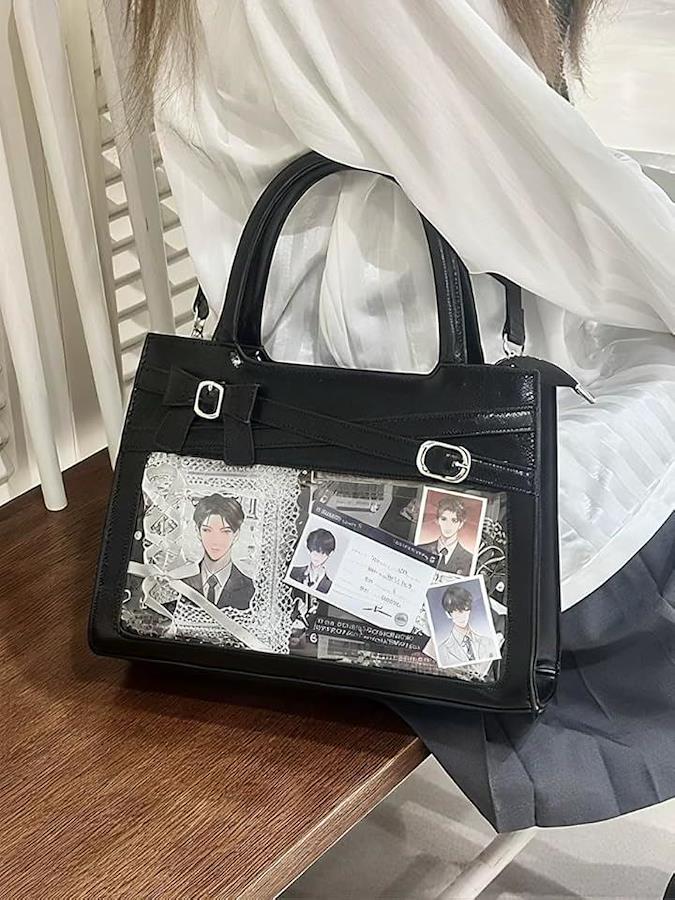 透明な部分を活用して、缶バッジ、アクリルキーホルダー、写真やポスターを飾ることで、日常使いのバッグがあなただけの特別な一品に変身します。