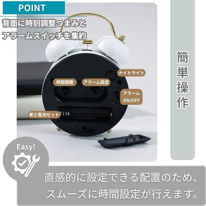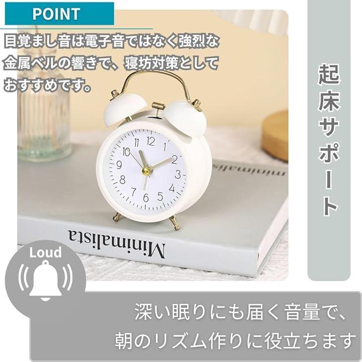 目覚まし音は電子音ではなく強烈な金属ベルの響きで、寝坊対策としておすすめです。
