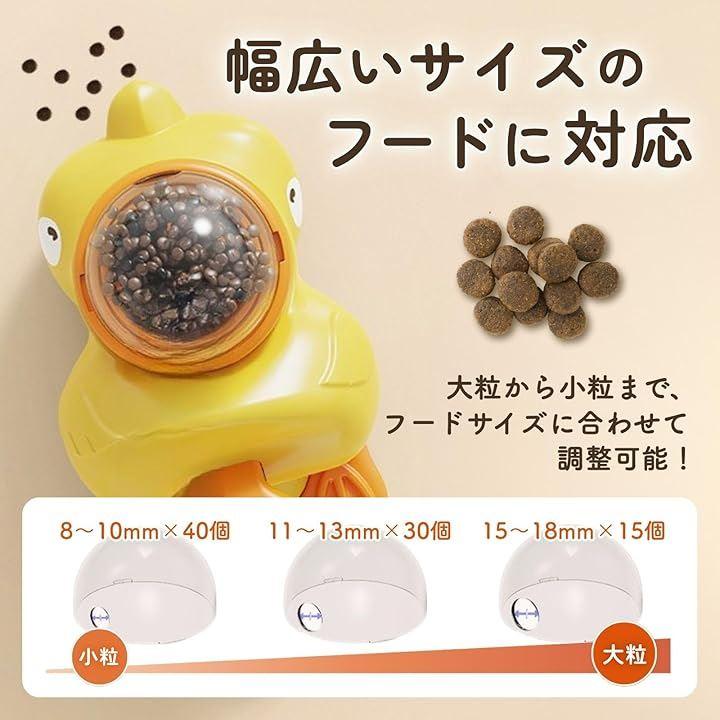 「大/小犬に対応」給餌部分の蓋の出口が大中小3つタイプがあり、小:8-10mm/40個 :11-13mm/30個 大:15-18mm/15個 の餌がでるようになっており小型犬から大型犬まで対応しています
