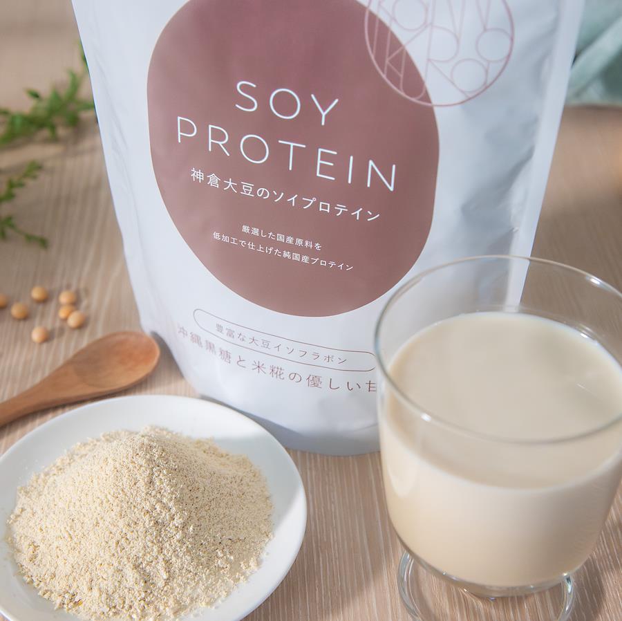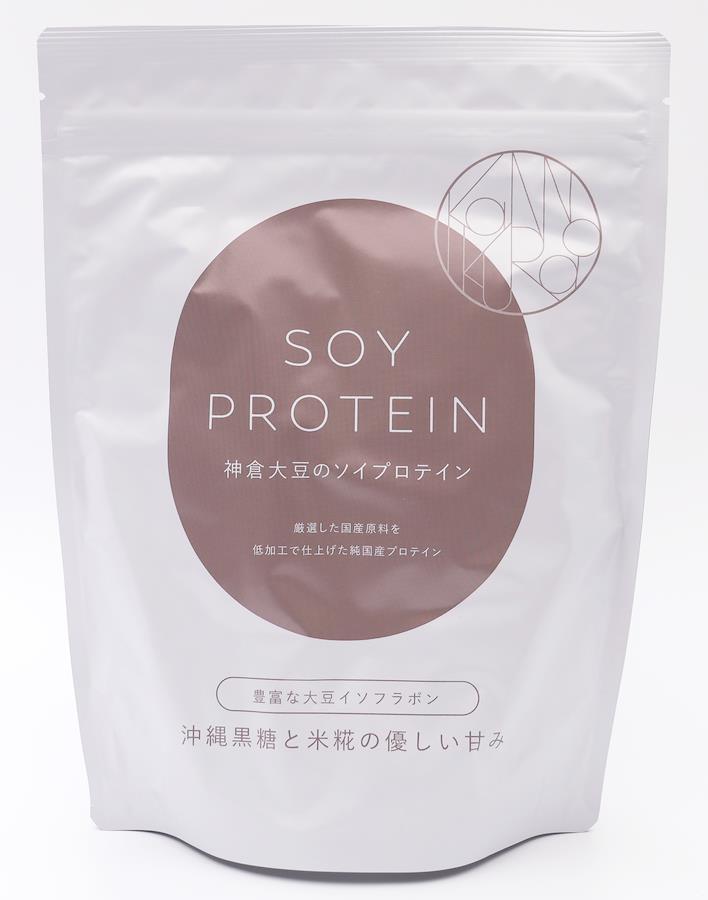 鳥取県三朝町(みささちょう)神倉(かんのくら)で古くから守り継がれてきた幻の地大豆「三朝神倉大豆」で作った国産原料のみを使用した国産のソイプロテインです。三朝神倉大豆のほか、国産の黒糖粉末(さとうきび)、米糀、食塩のみで作られており、人工甘味料、保存料、着色料、香料、防腐剤を一切使用しておりません。そのため、大豆の栄養をそのまま、安心して美味しく召し上がっていただけます。また、動物性原料を使用しておりませんので、ヴィーガン、ベジタリアンの方にも安心してご利用いただけます。自然な優しい甘みは水や牛乳、ヨーグルトなどとも相性がよく、また超微粉砕することで溶けやすくなっておりますので、日常的に手軽に美味しくお役立てください。※通院中または薬を服用されている方は、事前に医師にご相談の上ご使用ください。