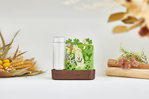 通常1-5営業日で発送:新しい「うるおい」は、自然や動物のシルエットで、楽しく躍動感のある商品を企画。水受けトレイは、緑を多めに取り入れたイラストにマッチする、木目調を採用します。愛嬌いっぱいの、うさぎたちを草花と絡めたシルエットで表現。緑色をベースに差し色で華やかに演出。裏面にも印刷し立体的な仕上がりに。ウイルス予防、冬の乾燥対策に向けた加湿アシスト! 電気を使わないeco仕様で、加湿能力はコップ約10杯分! お部屋のインテリアとして飾れるアート感覚の加湿器!