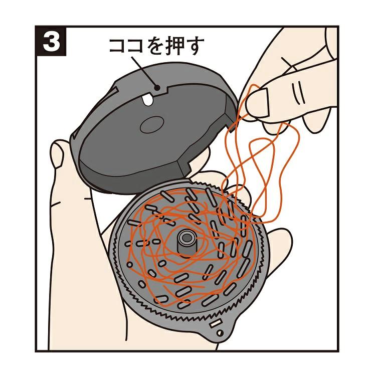 スリットから糸クズを入れて、ワインダーを矢印方向に回すだけ!