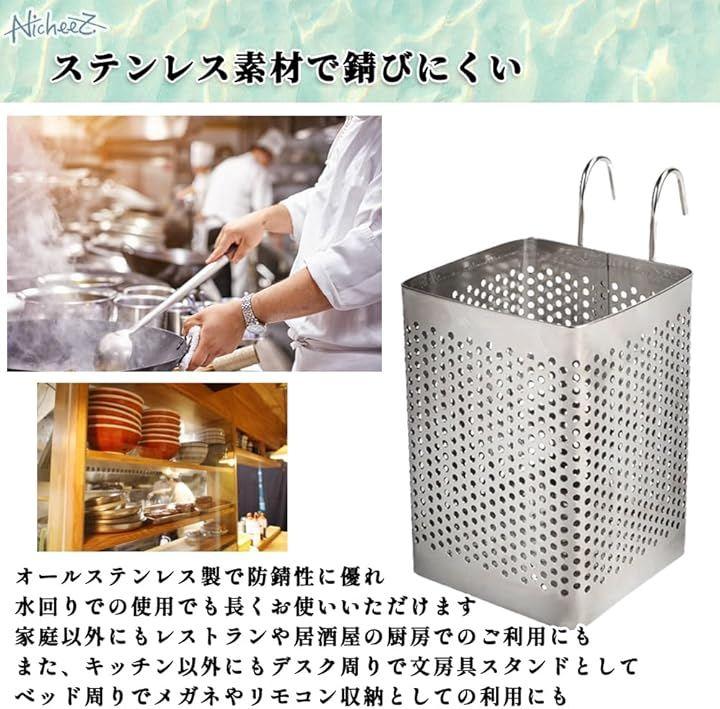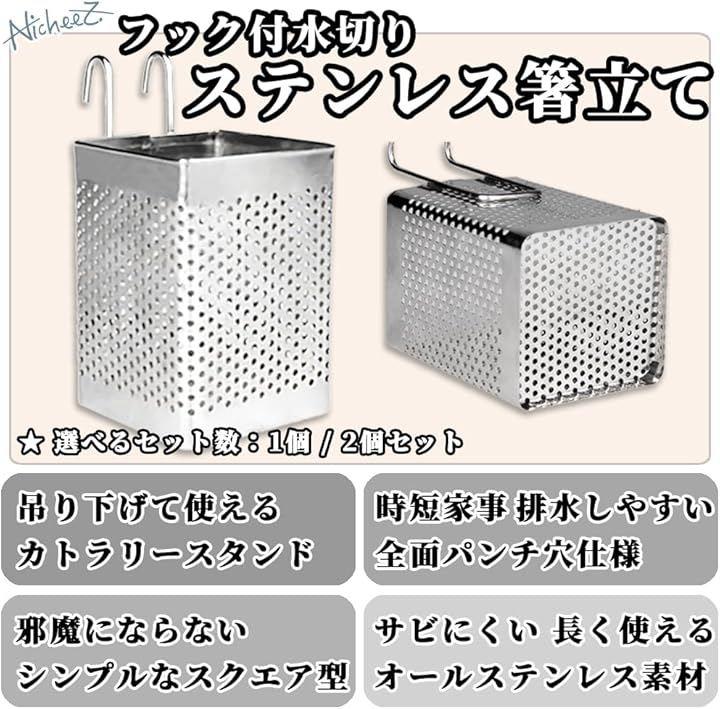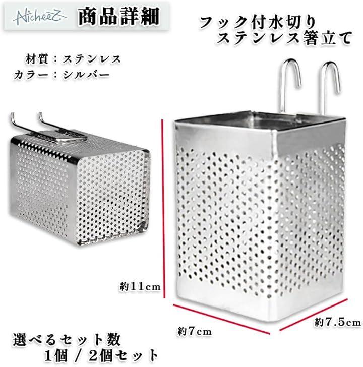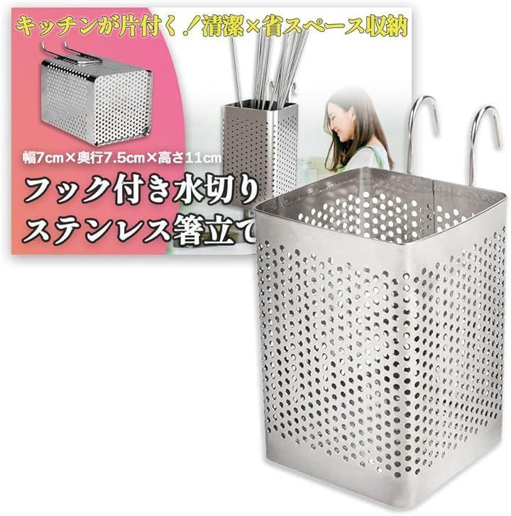 「商品内容」 フック付き水切りステンレス箸立て 材質:ステンレス カラー:シルバー サイズ:幅/約7cm 奥行き/約7.5cm 高さ/約11cm