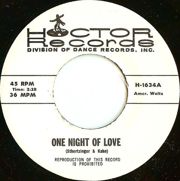 ・アーティストUnknown Artist・タイトルOne Night Of Love・レーベル・型番HOCTOR H1634・フォーマット7インチレコード・コンディション(盤)良い (VG+)・コンディション(ジャケット)プレインカバー(元ジャケット/カバー無し)・コンディション(帯)オビなし・特記事項【レーベルに書き込み】【盤に薄い跡】