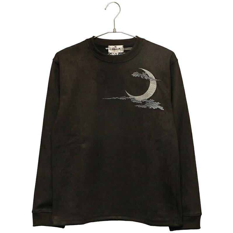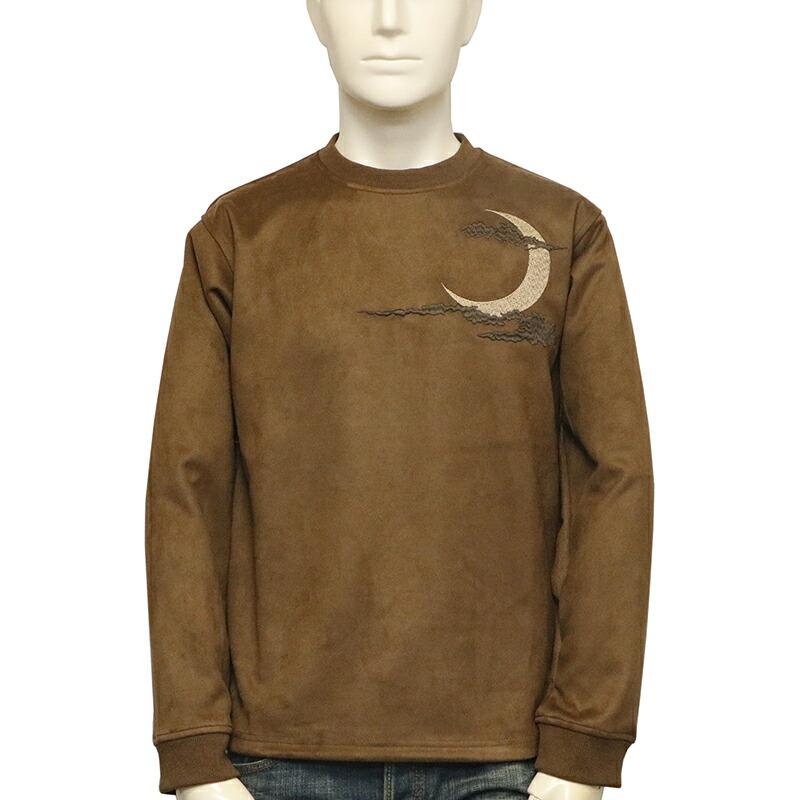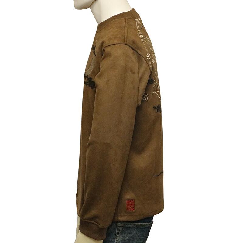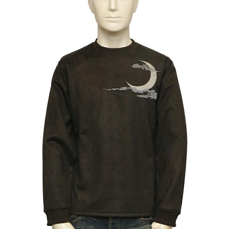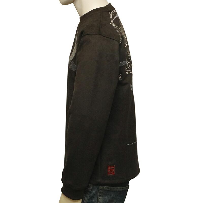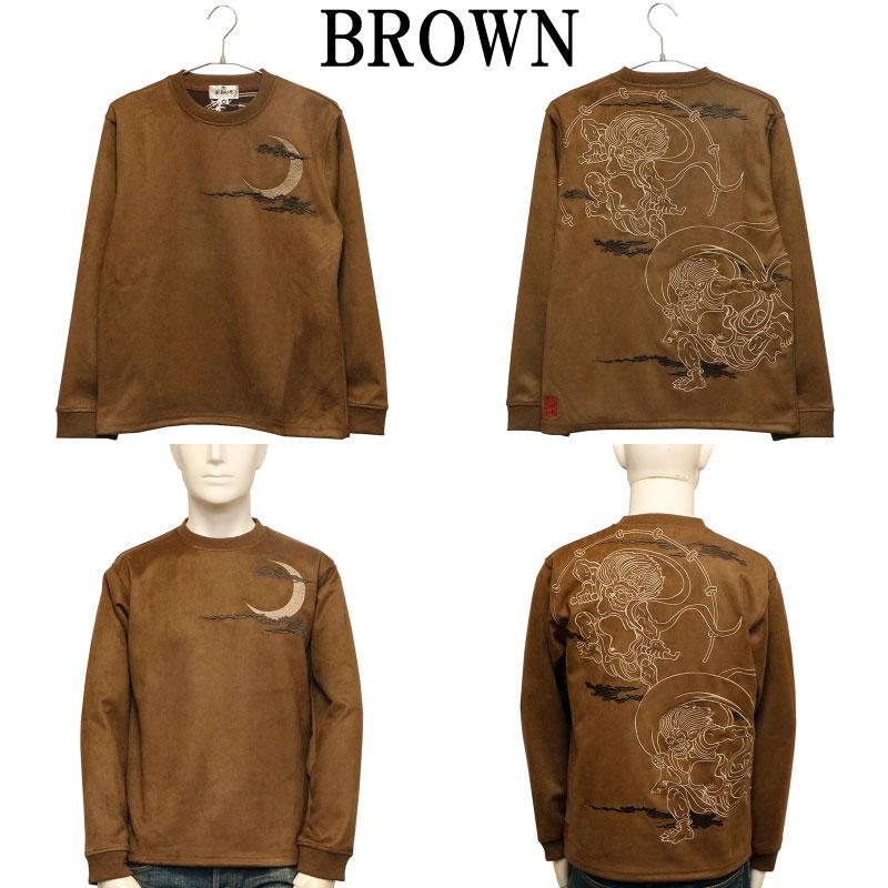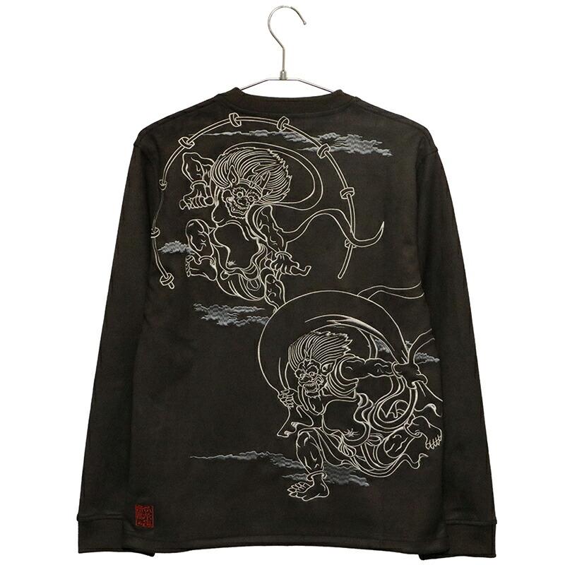 風神雷神 柄 刺繍 フェイクスエード 和柄 長袖Tシャツ