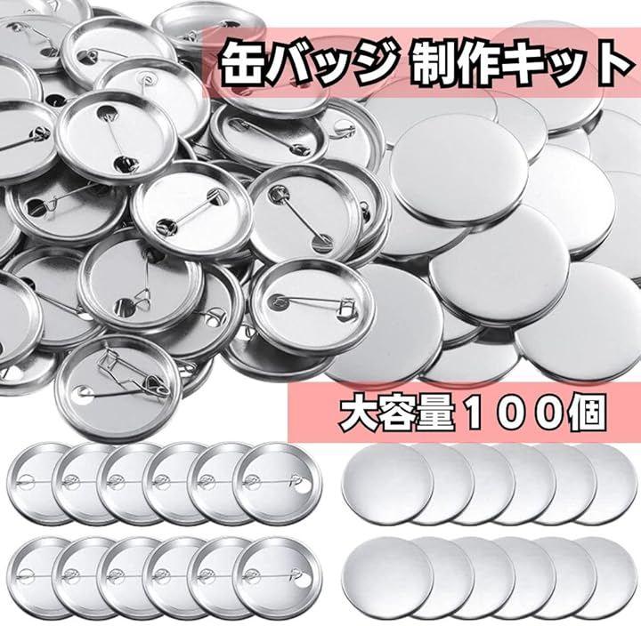 「商品詳細」缶バッチ100個セット、セット内容: 缶バッジシェル・ピンバック・バッジフィルム、サイズ:直径50mm