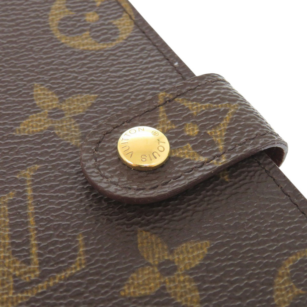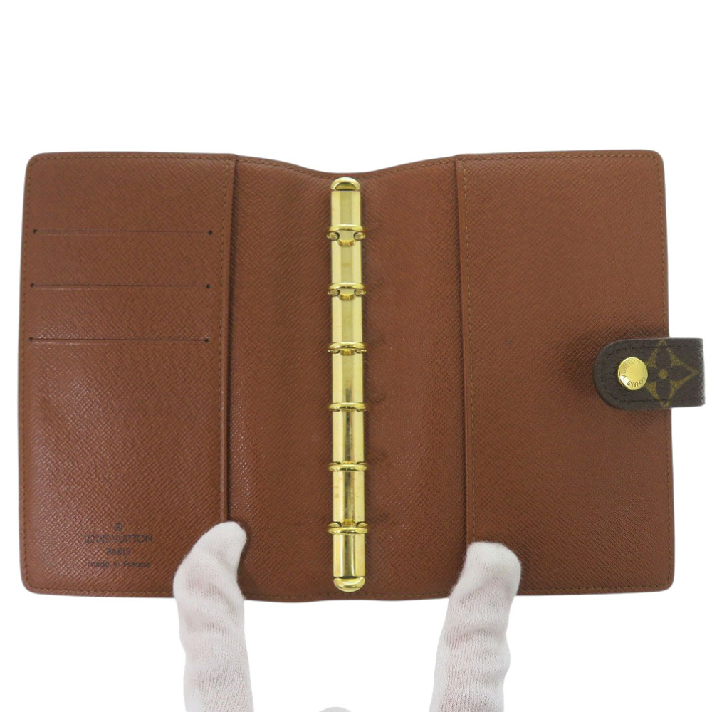 [管理番号]7G0772IA5k22[ブランド]ルイ・ヴィトン(LOUIS VUITTON)[型番]R20005[製造番号]SP0051[対象]レディース[カラー]ブラウン[金具]ゴールド[モデル]アジェンダPM[ライン]モノグラム[生産国]フランス[生産年]2001[サイズ]W約10.5cm x H約14.5cmx D約2cm[素材]モノグラムキャンバス[仕様]開閉式:スナップボタン内側:カードポケット x 3、フリーポケット x 2[付属品]なし