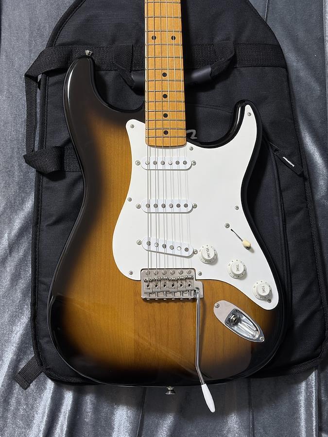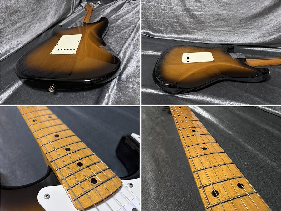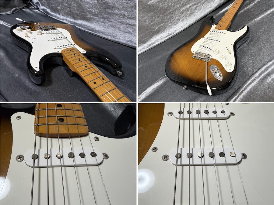 当モデルは本家Fender USAの57年モデルを再現しており、スモールヘッドスパロゴのFenderロゴ、6点止めブリッジにヴィンテージスタイルのサドルなどハードウェアにいたるまで当時の古き良きストラトの雰囲気を忠実に再現しております!