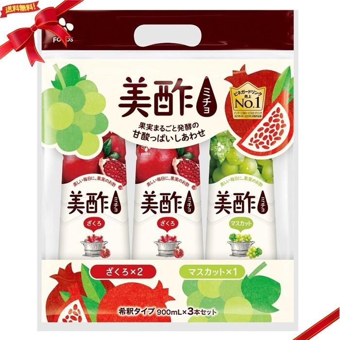 ・100%果汁をじっくり発酵させた果実酢を使用したビネガードリンク"美酢"の2種フレーバーセットです。・一番人気のフレーバー”ざくろ”が2本入って登場。・まろやかな味わいのビネガードリンクなので、お子様や男性の方にもおすすめです。 水や炭酸、牛乳などお好みの割り方で召し上がりください。・4倍希釈タイプ(水:美酢=3:1)の商品です。・1本900ml x 3本