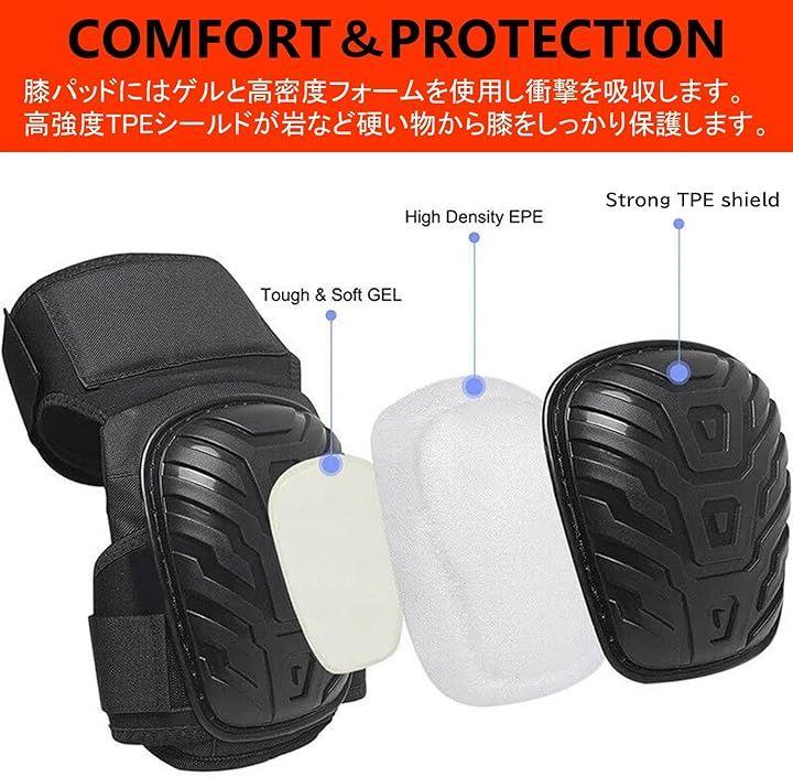 膝パッドにはソフトゲルと高密度EVAフォームを使用し優れた緩衝性能で衝撃を吸収します。