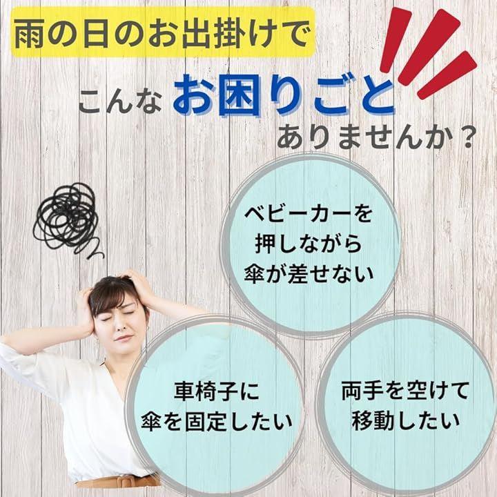 「傘スタンドの利便性」雨の日、片手運転の危険から皆様を守る強力な味方、それが本製品「傘スタンド」です。