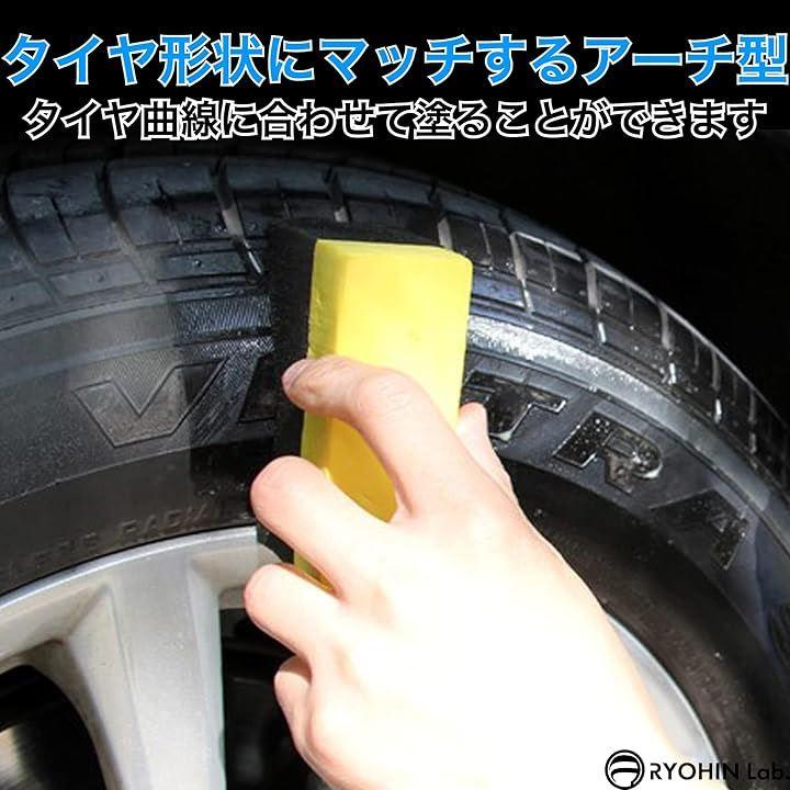 使用方法:タイヤワックスをスポンジのやわらかい方に適量とり、タイヤ側面に塗ってください。