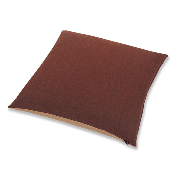 四季の移ろい捉えたような日本古来の色は、風情ある自然の色を映しています。同系色の落ち着いた深い色と優しい淡い色の組み合わせのリバーシブル仕様は、その日の気分や使う場所で色を変えて頂くと普段の暮らしのスパイスとなります。心を和ませる色のバリエーションは全5種類をご用意しました。異なる太さの糸を使い平織りとなな子織りを組み合わせて織られたブッチャー生地は、交叉する糸の凹凸が染め色に陰影を落とし深みを加えます。しっかり柔らかな手触りが心地よく、無地でありながら織り糸の表情が感じられる素材です。【カバーサイズ】 横55㎝×縦55㎝【生地素材】 綿(ブッチャー)100%この商品はカバー(ファスナー加工)のみです。中わたは別途ご購入ください。またカートの購入可能数より多い数をご希望の場合はご相談ください。