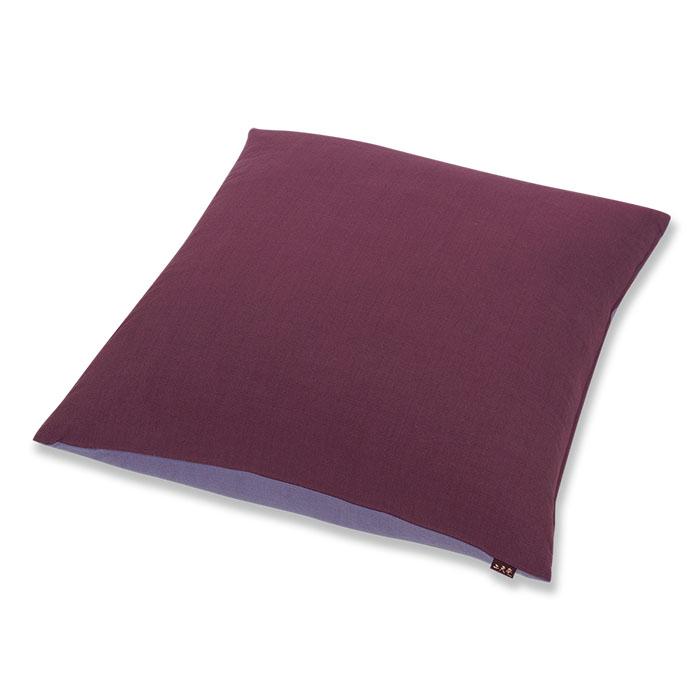 四季の移ろい捉えたような日本古来の色は、風情ある自然の色を映しています。同系色の落ち着いた深い色と優しい淡い色の組み合わせのリバーシブル仕様は、その日の気分や使う場所で色を変えて頂くと普段の暮らしのスパイスとなります。心を和ませる色のバリエーションは全5種類をご用意しました。異なる太さの糸を使い平織りとなな子織りを組み合わせて織られたブッチャー生地は、交叉する糸の凹凸が染め色に陰影を落とし深みを加えます。しっかり柔らかな手触りが心地よく、無地でありながら織り糸の表情が感じられる素材です。【カバーサイズ】 横55㎝×縦59㎝【生地素材】 綿(ブッチャー)100%この商品はカバー(ファスナー加工)のみです。中わたは別途ご購入ください。またカートの購入可能数より多い数をご希望の場合はご相談ください。