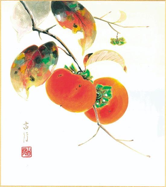 作品名: 柿 作者: 佐藤吉行 サイズ: W24.2xH27.2cm 材質: 和紙 収納: 紙袋 産地: 日本 用途: 秋掛け |
