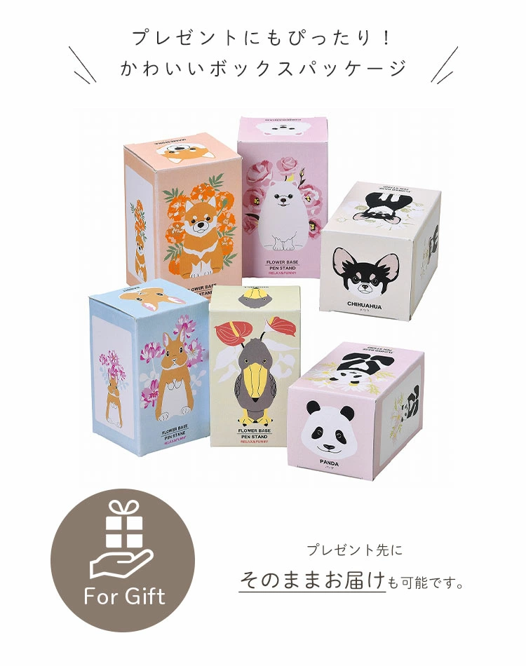 【フラワー&ペンスタンド】一輪挿しやペンスタンドとして使える可愛い陶磁器の動物たち。机の上や窓辺、キッチンなどどんな場所にも似合うインテリアに。可愛いボックスパッケージはプレゼントにもぴったりです♪