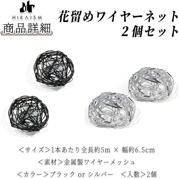 「商品内容」花留めワイヤーネット <サイズ>1本あたり全長約5m x 幅約6.5cm <素材>金属製ワイヤーメッシュ <カラー>ブラック or シルバー <入数>2個