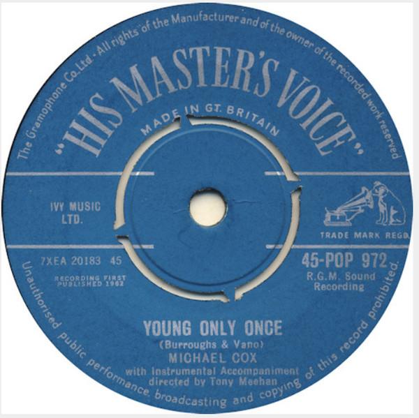 ・アーティストMichael Cox・タイトルYoung Only Once・レーベル・型番His Master's Voice 45POP972・フォーマット7インチレコード・コンディション(盤)良い (VG+)・コンディション(ジャケット)プレインカバー(元ジャケット/カバー無し)・コンディション(帯)オビなし・特記事項【盤に目立った跡】【盤に目立ったキズ】【レーベルにシール付着】【company sleeve】