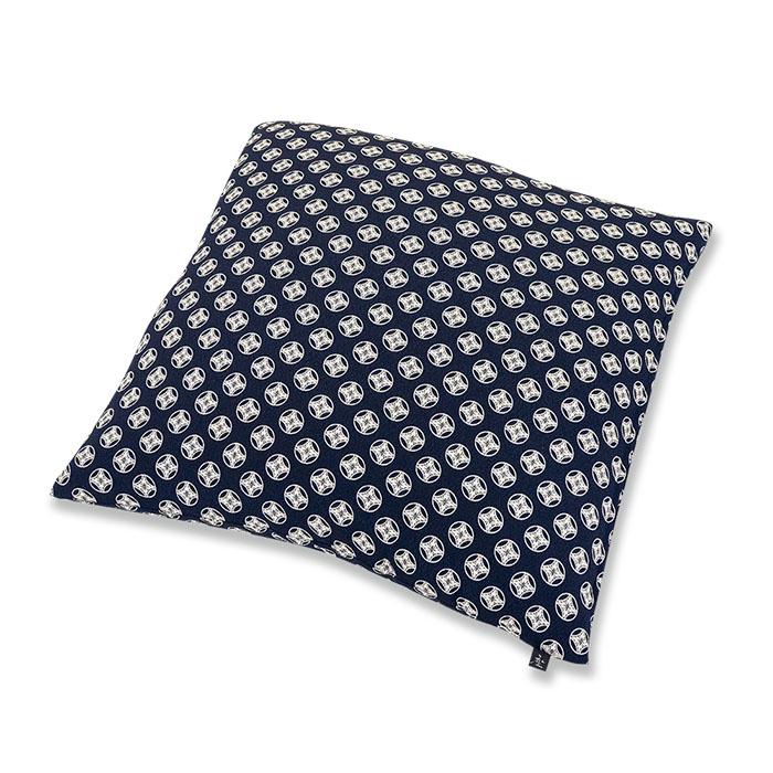 丸の中の模様は「花菱」といい、菱形の中に四弁の花を納めた有職文様で平安時代には貴族や身分の高い人しか使えなかったことから「高貴、上品」などの意味を持ちます。整然と並んだ【丸に花菱】は、引き締まった表情を見せ、控えめでありながら存在感をもつ仕上がりです。シンプルに【紺】と【生成】の2色をご用意しました。生地はポリエステルのちりめん織りで柔らかく細かなシボ(凹凸)を持ち、サラッと手に馴染むお手入れのしやすい素材です。【カバーサイズ】 横60㎝×縦60㎝【生地素材】 ポリエステル(ちりめん)100%この商品はカバー(ファスナー加工)のみです。中わたは別途ご購入ください。またカートの購入可能数より多い数をご希望の場合はご相談ください。