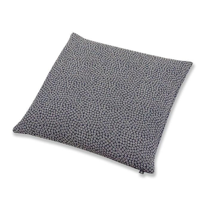 小さな粒で染められた小花たちが江戸小紋のような繊細な表現で咲きこぼれます。嫌みのない可愛いい【豆小花】は、柔らかな手触りのちりめん生地と相まって、ふんわり優しい雰囲気を醸し出します。和洋問わずどんな空間にも合うデザインです。シンプルに【紺】と【生成】の2色をご用意しました。生地はポリエステルのちりめん織りで柔らかく細かなシボ(凹凸)を持ち、サラッと手に馴染むお手入れのしやすい素材です。【カバーサイズ】 横59㎝×縦63㎝【生地素材】 ポリエステル(ちりめん)100%この商品はカバー(ファスナー加工)のみです。中わたは別途ご購入ください。またカートの購入可能数より多い数をご希望の場合はご相談ください。