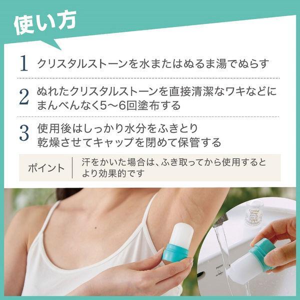 【使い方】・ストーンを水またはぬるま湯でぬらし、直接清潔なワキなどにまんべんな塗布する。