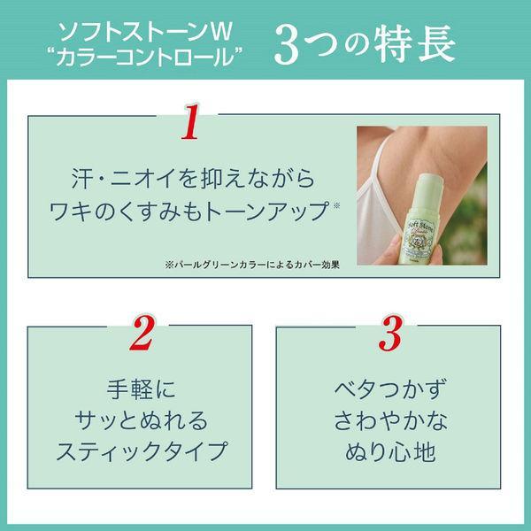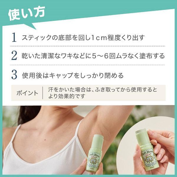 ソフトストーンWと同じ消臭効果と持続力を発揮!パールグリーンカラーでワキのくすみを目立たせない。手軽にサッとぬれるスティックタイプ。●無香料。●有効成分「焼ミョウバン」がニオイを元から防ぎ、汗を抑える。●微粒子化した「焼ミョウバン」が肌に密着。●ベタつき防止成分配合でさらさら快適。