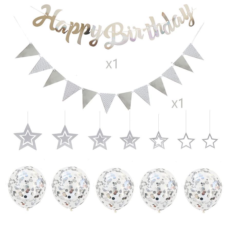 誕生日 バルーン 飾り付け 風船セット ハッピー バースデー HAPPY BIRTHDAYガーランド ハート風船 紙吹雪風船 ドットシール 装飾 パーティー お祝い サプライズ (シルバー)?【やさしい素材】環境にやさしいキラキラ紙で、すべての装飾はシルバーの色で、ゴールデンテーマパーティーにぴったりです。すべての装飾は高品質であり、複数回再利用できます 【充実のセット内容】豪華オールインパッケージの装飾セット。 バルーンX5、Happy BirthdayガーランドX1、三角ガーランド×1、星付き;おしゃれなデコレーションで簡単おしゃれ??楽しいデコレーションセットです。自由な組み合わせでフォトジェニックな空間に大変身。 【簡単!アレンジ】 金の紙のファンはすぐに使えるお部屋の装飾セットです。作り方は簡単でお部屋の天井から吊るしてもよし♪壁にマスキングテープで貼るなどしてもよし♪ 床に並べても飾るのもよし♪ 簡単でオシャレに色々な使い方でお楽しみ頂くことが出来、飾り付けが苦手な方でも大丈夫です。 【使用シーン】 お誕生日のお祝いなど、様々な記念??に残るシーンでこんなかわいいお部屋のデコレーションはいかがでしょうか。お子さまやお友達、大切な人の大切な記念日を華やかにお祝い出来ます。このセットを使えば、?豪華?におしゃれな空間に! 【アマゾンの安全保障】 ご使用中に何か疑問や、誤購入、または万が一不具合がございましたら、ぜひコメントする前に【アカウントサービス】⇒【注文履歴】⇒【出品者に連絡する】いただけますように、弊店は責任を持って全力で対応させて頂きます。