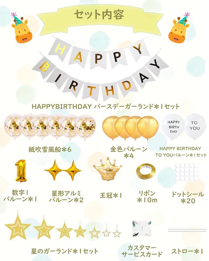 【最新バリエーション&盛り上がる誕生日会に!】お誕生会の演出・サプライズにおすすめ!アルミ風船セットです、ハッピーバースデー!風船でお部屋を飾りつけ!大切なあの人のお誕生日を、ゴージャスにお祝いしちゃいましょう. 明るくて、元気一杯なカラーで、男の子も女の子も大活躍です. キラキラとしていてゴージャスな雰囲気を演出できます. ゴージャスでパーティーにぴったり. 【輝くセット&数字バルーン&お買い得】キラキラしている 誕生日 飾り付け セット&新しい風船セットを追加!!!セット内容:①「HAPPY BIRTHDAY」ガーランドバースデーガーランド×1セット ②王冠バルーン×1 ③紙吹雪風船×6 ④数字バルーン×1 ⑤星型アルミバルーン×2 ⑥星のガーランド×1セット ⑦吸込管×1本 ⑧ゴールドリボン×10m ⑨ドットシール×20点 ⑩カスタマーサービスカードx1. 追加風船セットの内容:ゴールド風船×4、HAPPY BIRTHDAY TO YOUバルーン×1セット 【華麗な感じ&適用場合広い】光沢があるペーパー製、角度により光が反射し高級感があります. ゴールド調で豪華感がある飾りセットは男の子にも女の子にもぴったりします. 鮮やかな色で人目を引きやすいし、喜びの雰囲気を盛り上げることができます. お誕生日お祝いのために用意するのはもちろん、忘年会、クリスマスイブ、結婚式、ウェディング、二次会いろんな記念日パーティーにも大活躍しています. お大事な日に、もっと素晴らしい記念写真を撮るために、一緒に飾り付けましょう. 【安全安心.リサイクル】極厚のバルーンなので、破れにくいし、傷つけにくいです. 一回使った後、空気を抜いて、きちんと収納してから、次のパーティーやお部屋の飾り付けとして再利用も可能です. 両面テープは剥がしやすく、壁に傷めつけにくいので、便利で、キレイです. 無毒・無臭のため小さなお子様のいるご家庭でも安心して使用することが出来ます. 【品質保証】当社では厳しい品質管理体制のもと、商品重量による、二重検品を行っております. 万が一到着商品の初期不良にてお困りの際は、メッセージよりご連絡下さい. 当店製品にご質問がございましたらの場合は必ずの【注文履歴】-【出品者への連絡】をクリックし、メールにてご連絡ください. 無料交換のご連絡をさせていただきま