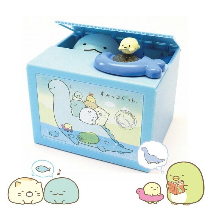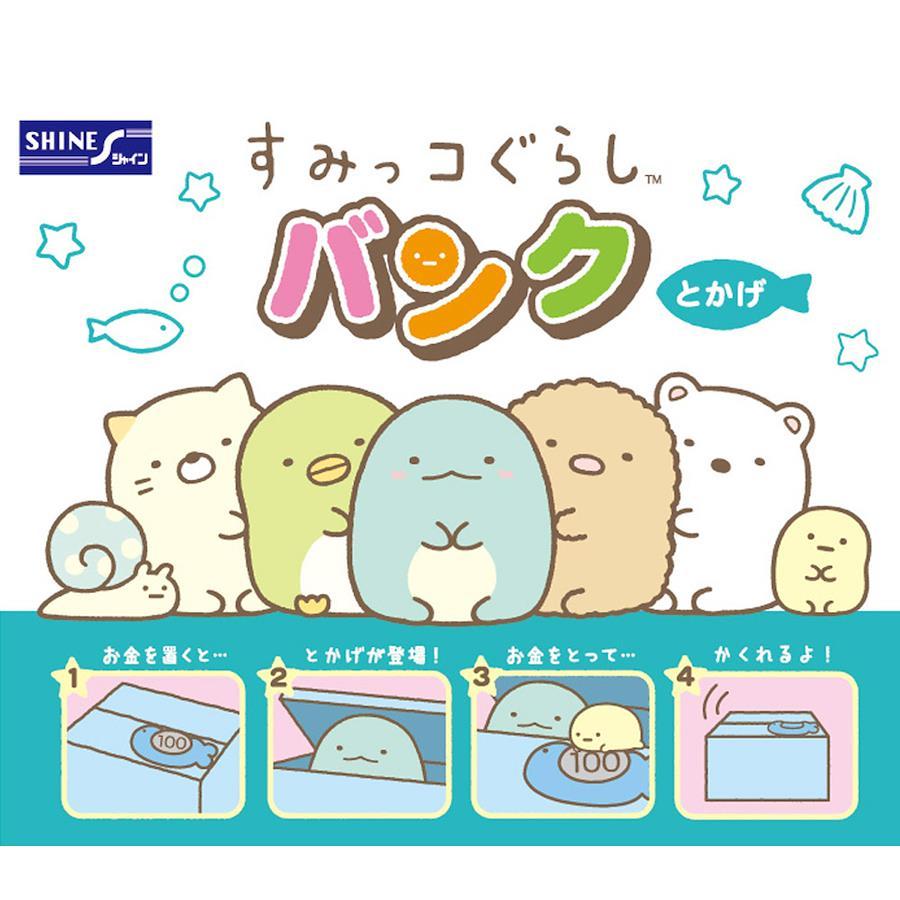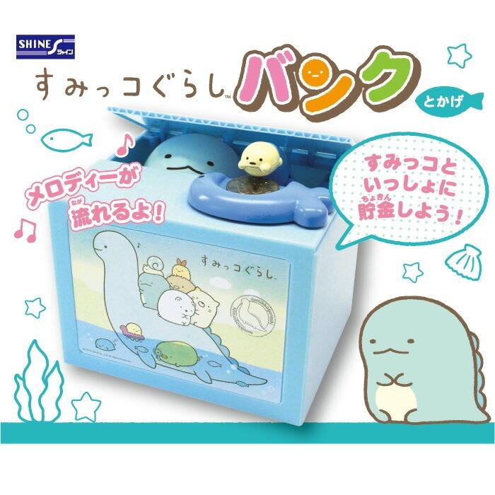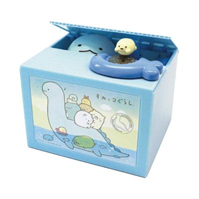 【商品詳細】話題のいたずらバンクに「すみっコぐらし」バージョンが登場♪コインをさかなの形のお皿に置くと、とかげが顔を覗かせ様子をうかがってるうちにたぴおかがコインを持って行きます。効果音と楽しいメロディーが流れます。