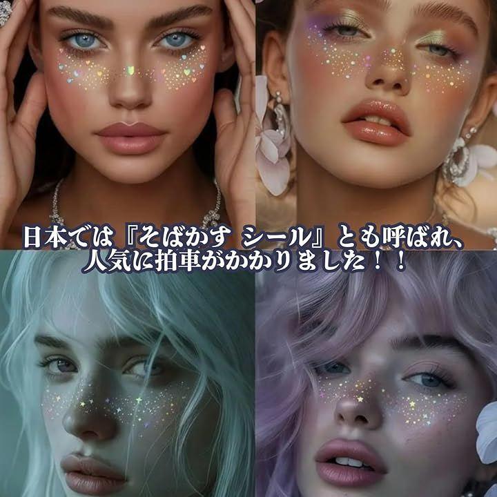 顏シール「キラキラ フェイスシール」は、顔のあらゆるところに貼って、華やかさをプラスできるシールです。