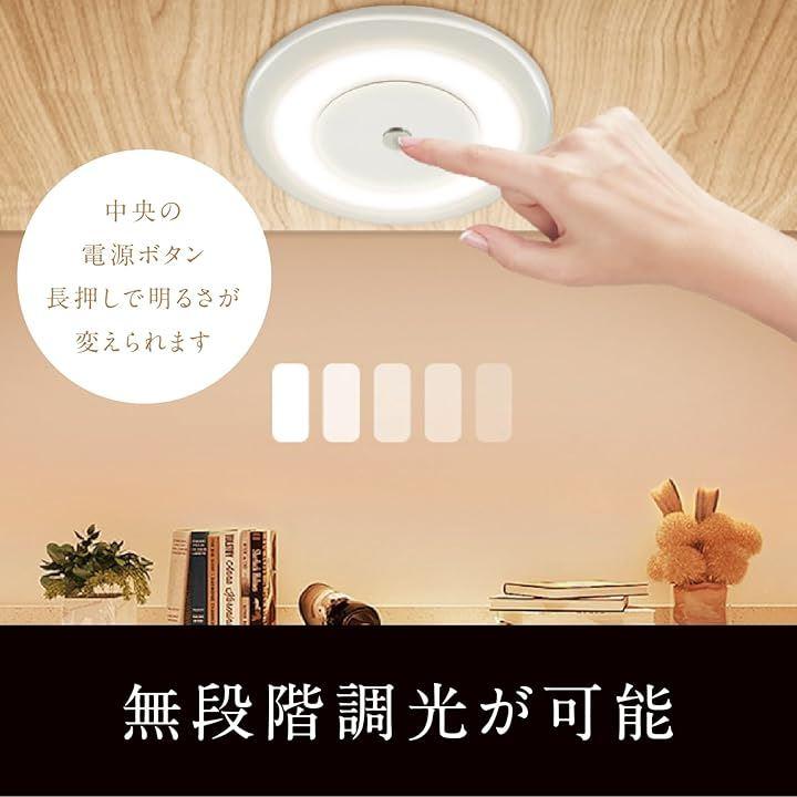 「調光機能付き」中央のボタンの長押しで無段階調光ができるので、お好みの明るさを選べます。