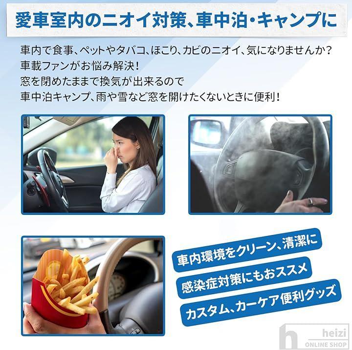 「愛車の室内のニオイ対策」車内で食事、ペットやタバコ、ほこり、カビのニオイ、気になりませんか?車載ファンがお悩み解決。